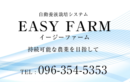 | 自動養液栽培システム イージーファーム (山本建設株式会社内) 〒860-0082 熊本市西区池田4丁目16−16 EASY FARM E-mail:info@easy-farm.site |